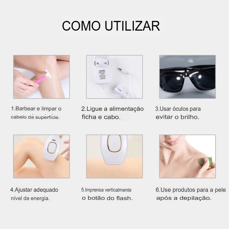 Depilador de Luz Pulsada IPL Asenei – Redução Progressiva de Pelos com 500.000 Flashes
