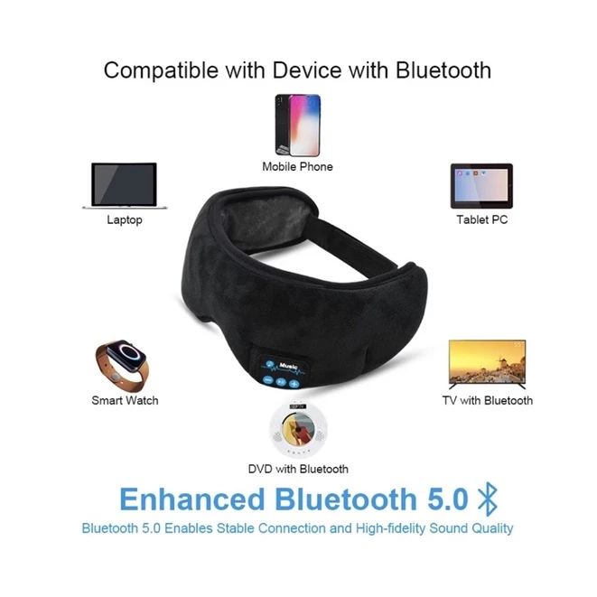 Feita em veludo macio com algodão elástico , ela proporciona conforto total durante o uso. Além de bloquear a luz, possui fones integrados com conexão Bluetooth, permitindo ouvir suas músicas favoritas sem fio e sem desconforto.